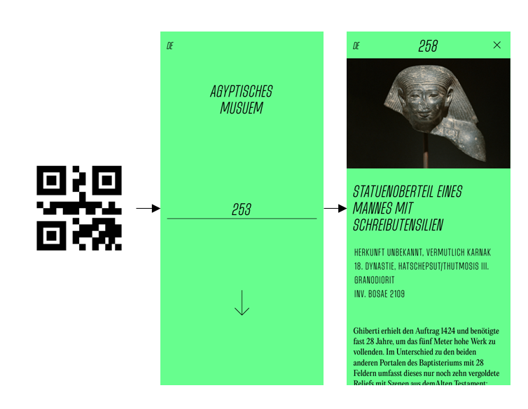 Zum Betrieb der C-Texte muss lediglich sichergestellt werden, dass das Schild mit der entsprechenden Objektnummer am Objekt in den Ausstellungsflächen angebracht ist, sowie die QR-Codes des jeweiligen Stockwerks für die Besuchenden leicht auffindbar und gut sichtbar sind.