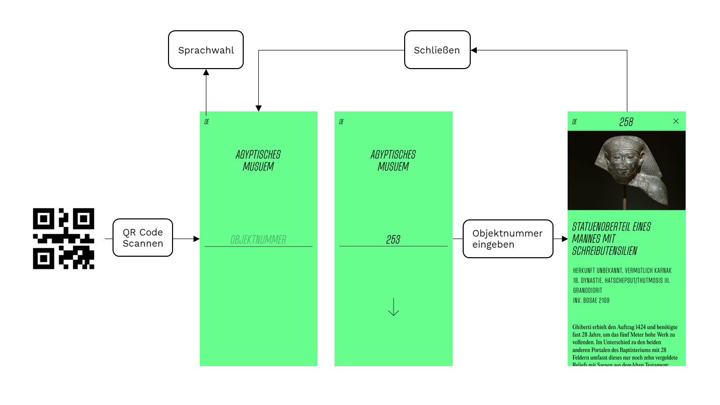 - Über einen QR Code gelangen die Besucher*innen zu einer Eingabemaske